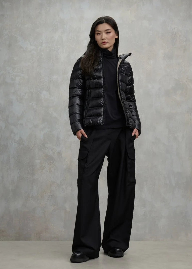 Il Piumino “Caroll” a righe di Blauer è un capo invernale da donna che unisce stile moderno e funzionalità: realizzato in nylon micro-ripstop idrorepellente, presenta un design sfiancato con righe orizzontali, imbottitura sostenibile in ovatta Sorona® Aura e cappuccio fisso regolabile per offrire protezione e comfort.