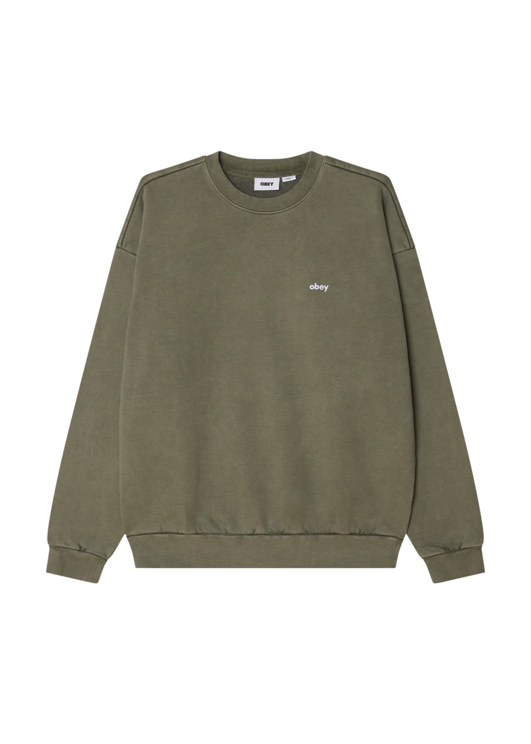 Il Lowercase Pigment Crewneck nella tonalità Pigment Deep Lichen Green di Obey è una felpa girocollo premium che unisce spessore, comfort e un look altamente distintivo.