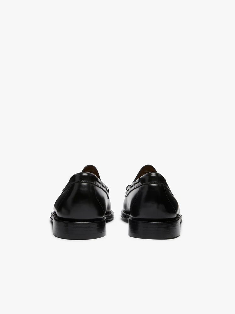 Le G.H. Bass Weejuns Larkin Tassel Loafers in pelle nera sono una reinterpretazione elegante del classico mocassino con nappine: perfette per l’uomo che cerca un mix tra tradizione sartoriale e stile urbano contemporaneo. Realizzate in pelle lucida nera di alta gamma, presentano cuciture a mano, suola in pelle e tassel frontali che ne esaltano l’allure raffinata.