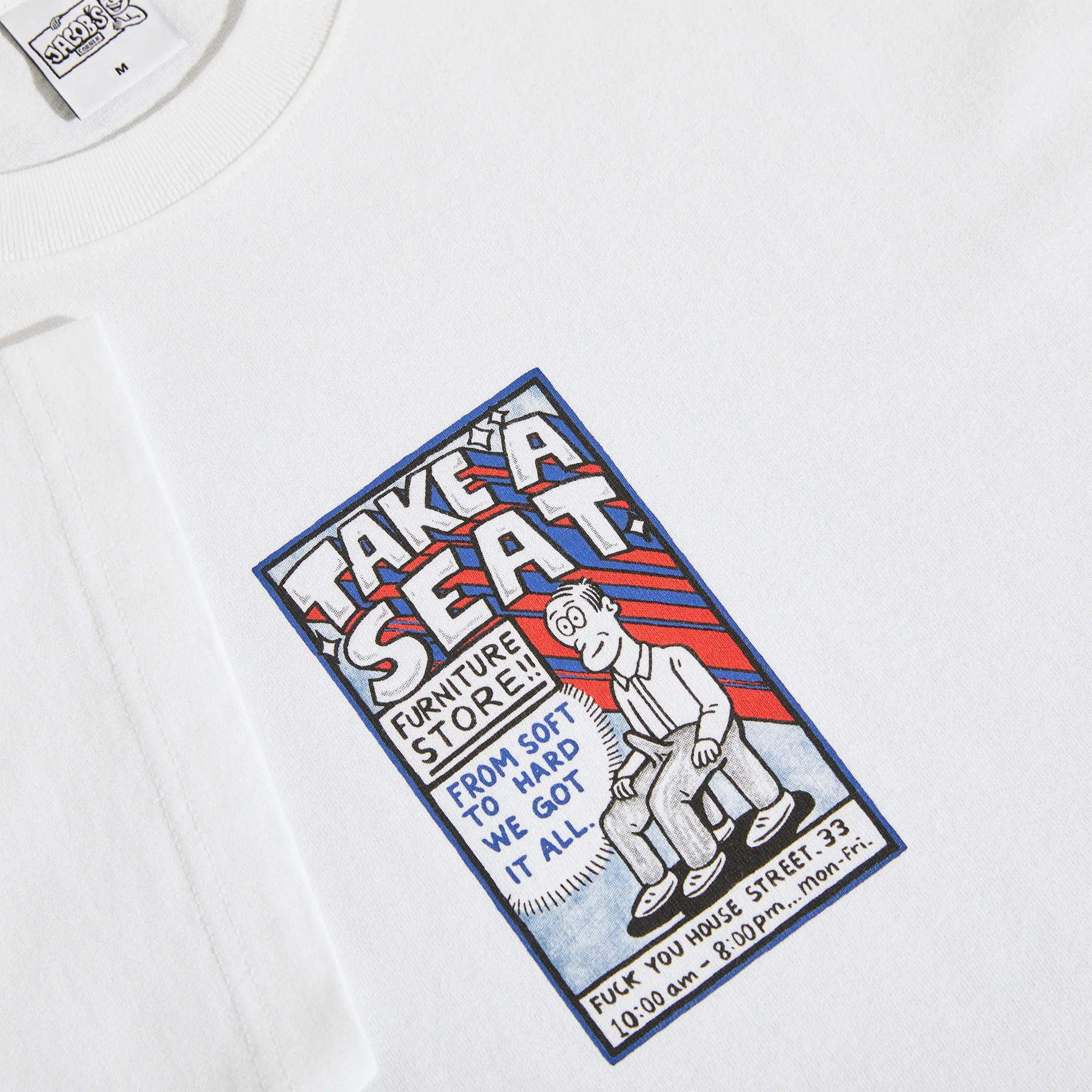 La Polar Skate Co. Tee “Take A Seat” White è una T-shirt di carattere, pensata per chi ama lo stile skate urbano con un tocco premium.