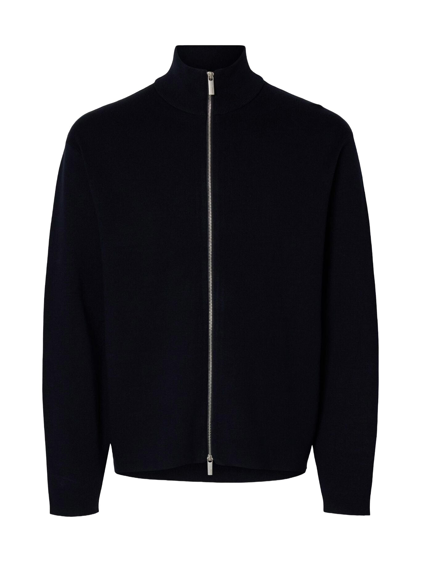 Cardigan in maglia Selected Homme colore Sky Captain con vestibilità relaxed e chiusura zip frontale.
