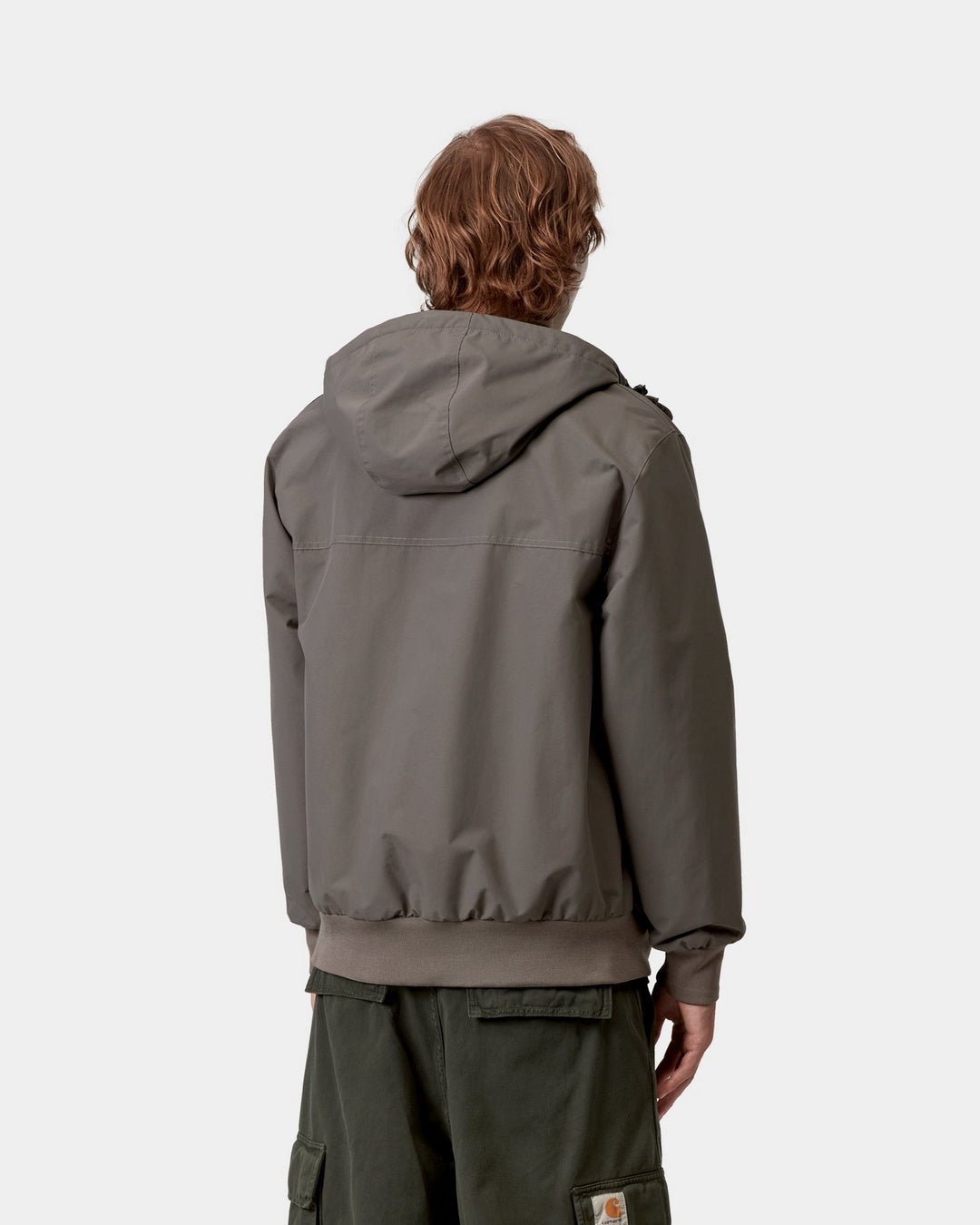La giacca a cappuccio Hooded Sail Jacket di Carhartt WIP, in colore “Porphyry/Black”, è pensata per uno stile urbano funzionale e distintivo.