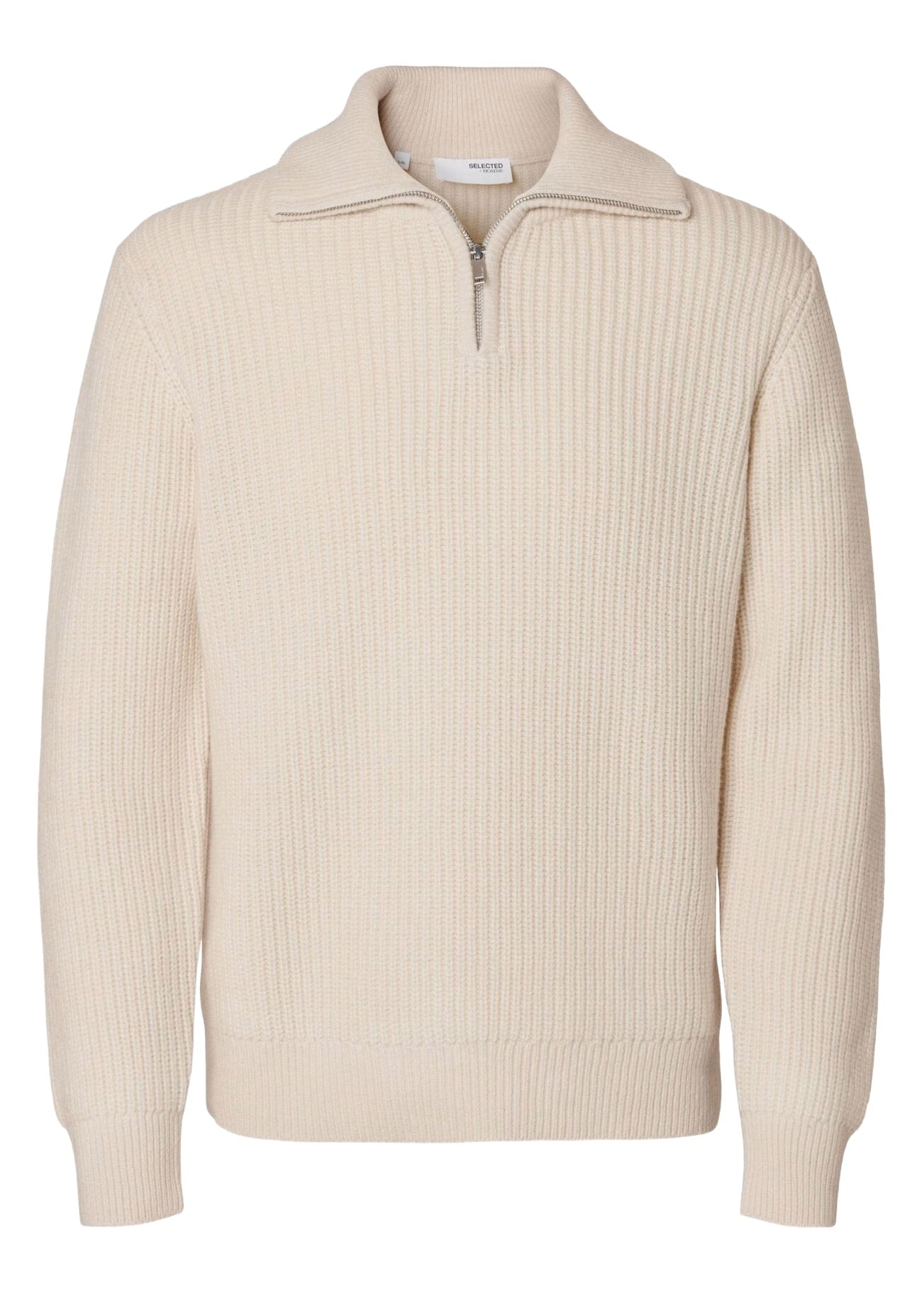 Maglione da uomo in lana certificata con mezza zip, collo alto e vestibilità regolare.
