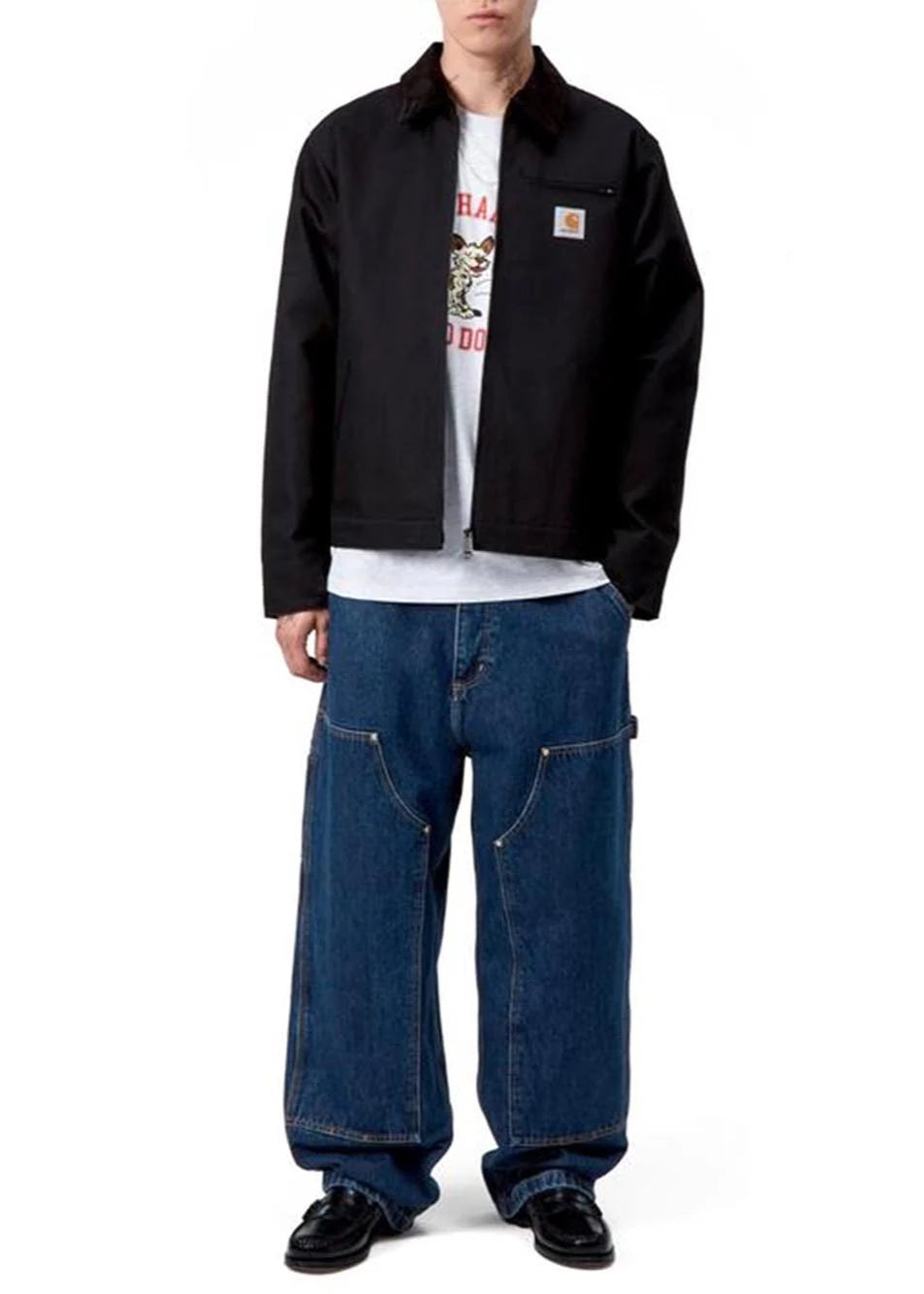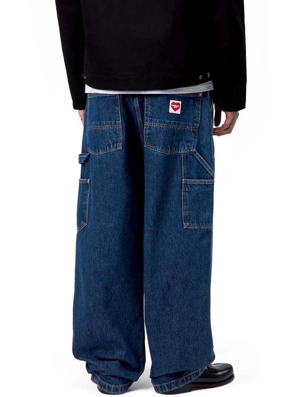 Tasche ausiliarie e “hammer loop” che richiamano l’heritage dei pantaloni da lavoro.