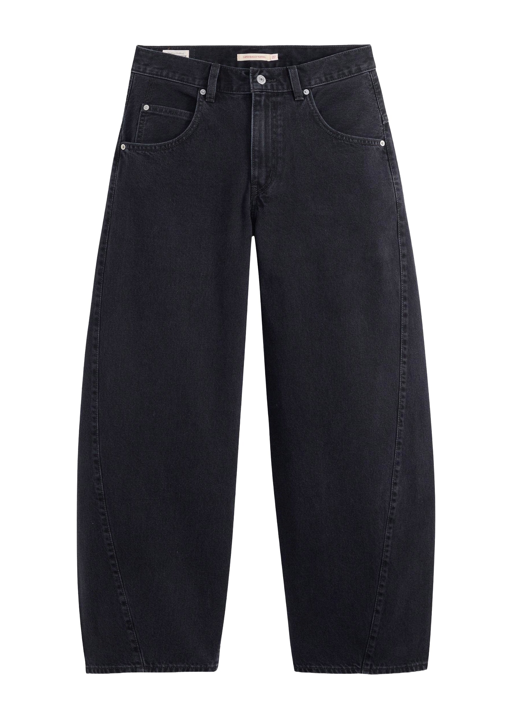 Jeans Levi’s® Barrel Super Baggy da donna in denim nero a vita media, con taglio extra oversize e gamba curva audace per un look rilassato e moderno.