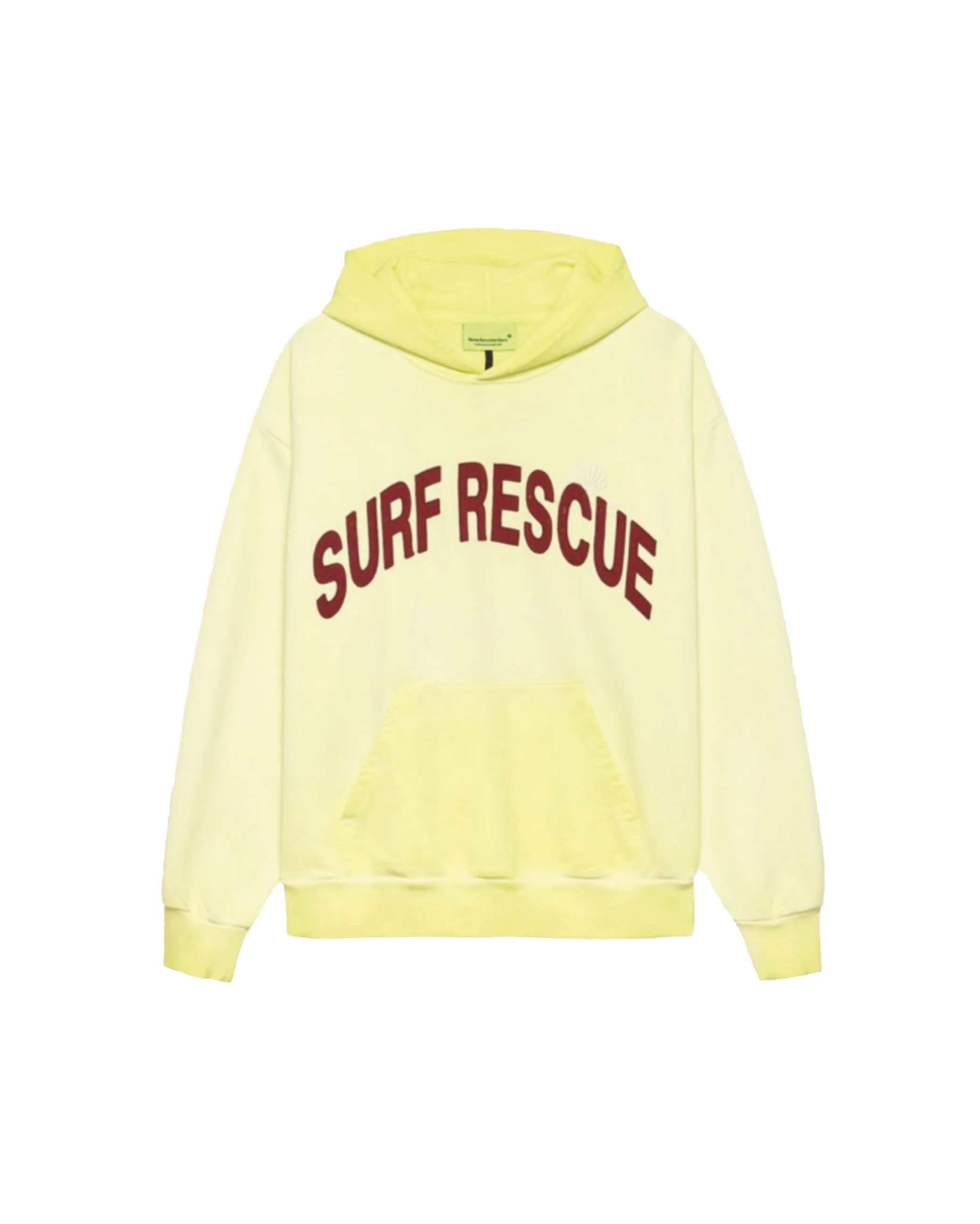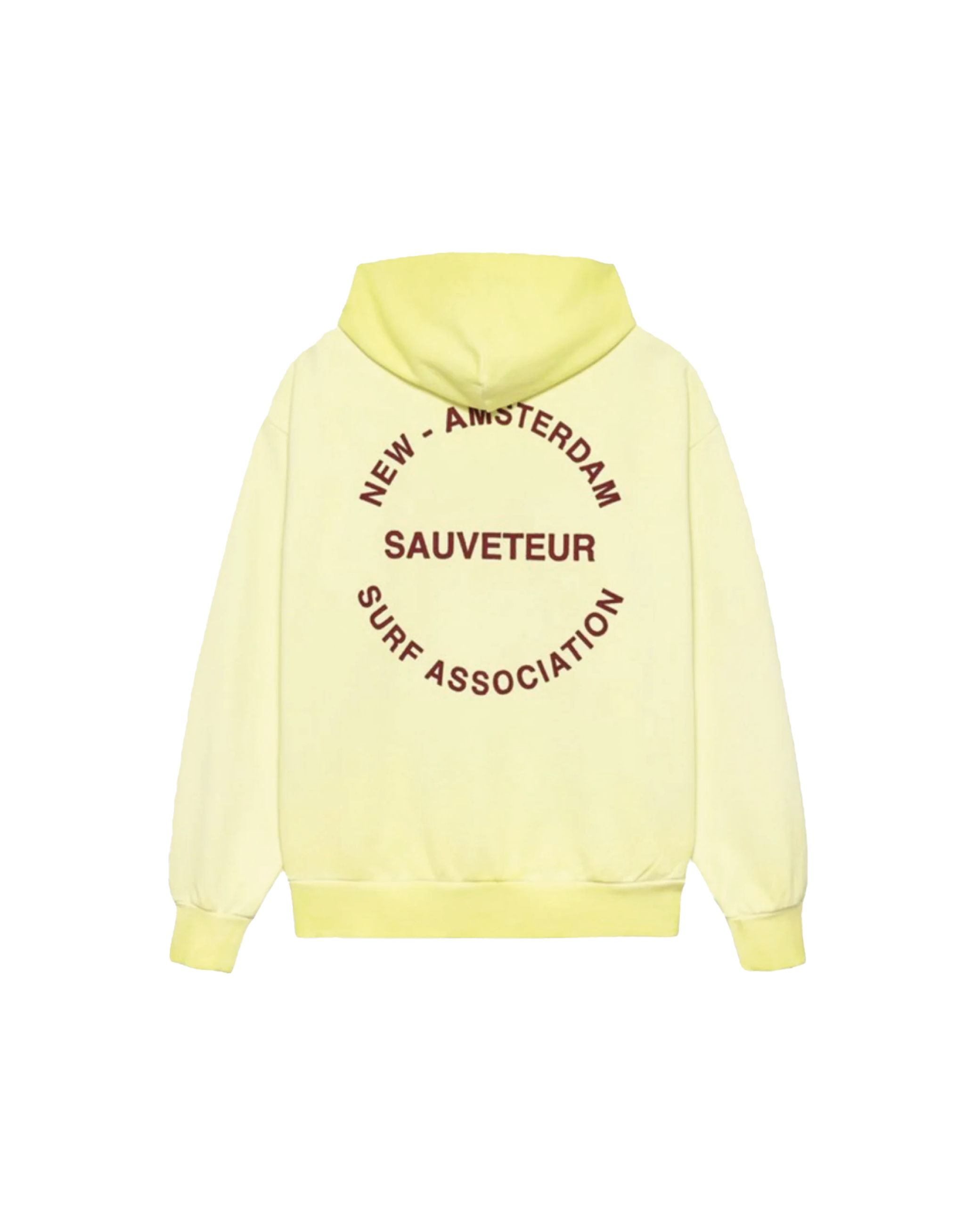 La New Amsterdam Surf Association Surf Rescue Hoodie Lime Yellow è una felpa con cappuccio dal forte impatto visivo, pensata per chi vuole distinguersi con uno stile streetwear contemporaneo e deciso.