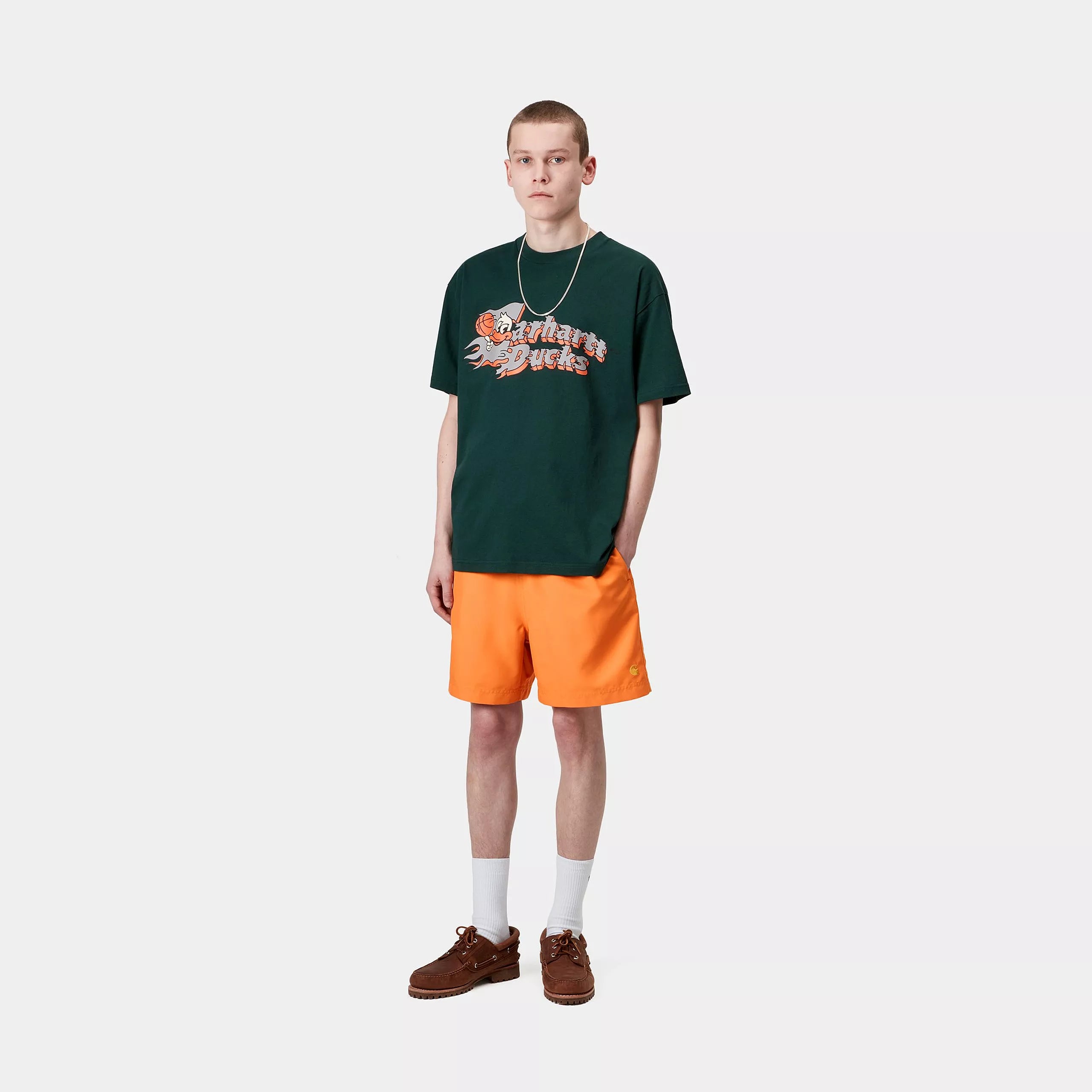 The Chase Swim Trunks from Carhartt WIP are swim trunks that combine functionality and minimalist style.