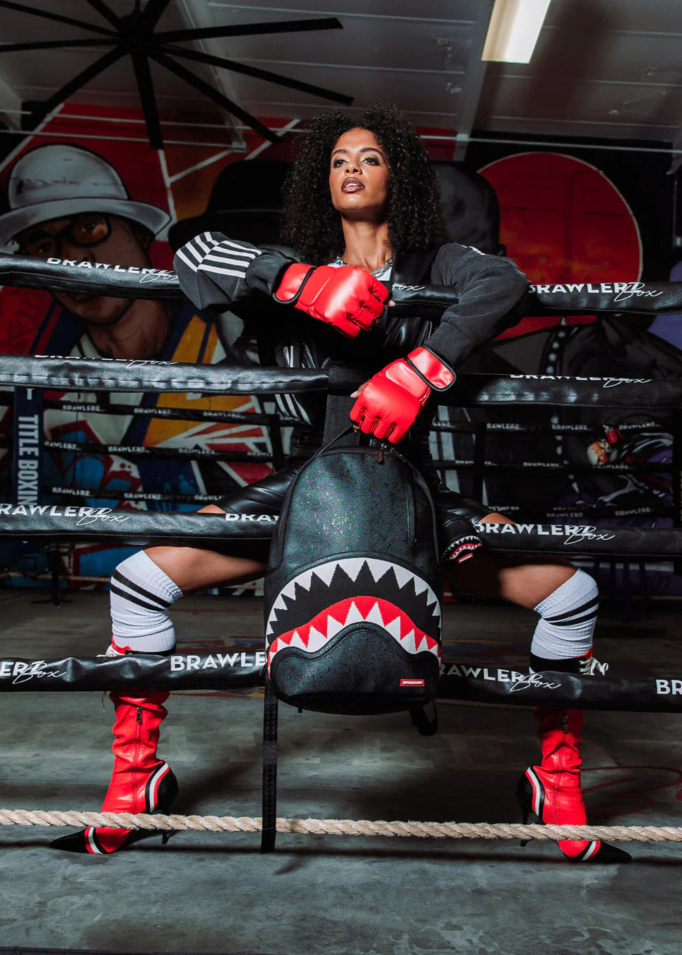 Realizzato in 100 % PVC (esterno) con dettagli in PVC DLX e fly knit sharkmouth, questo zaino vanta una superficie satinata brillante e una grafica accattivante che non passa inosservata.