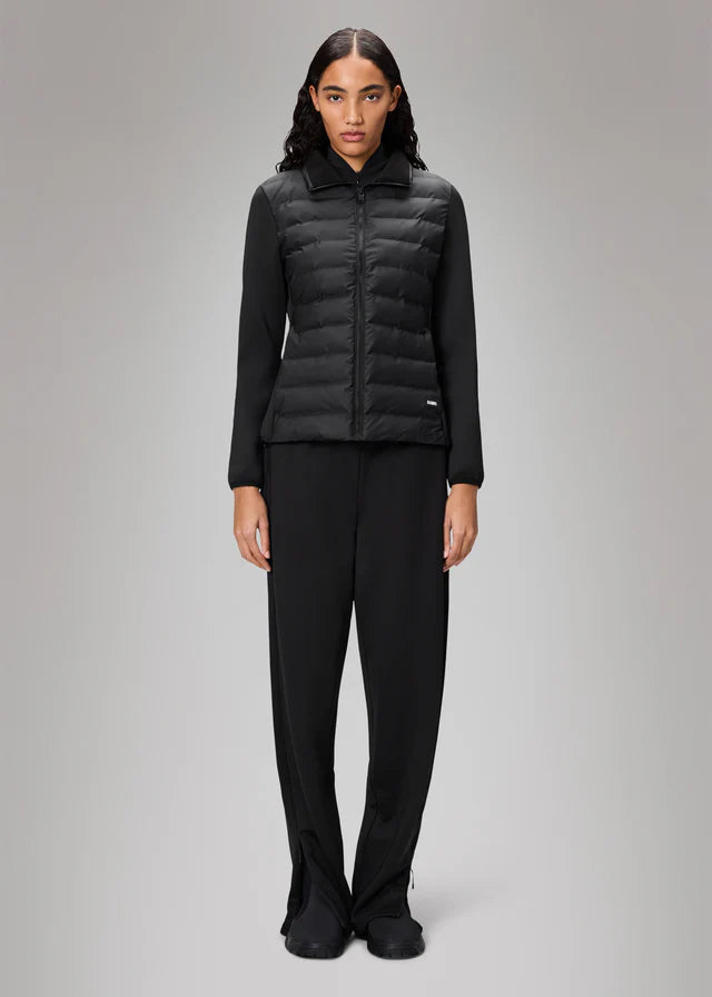 La Safi Fleece Hybrid Curve Jacket è un modello ibrido che unisce la calda morbidezza del fleece con pannelli frontali impermeabili in tessuto PU signature di RAINS: perfetta per chi cerca un capo versatile da mezza stagione, con stile urbano e performance.