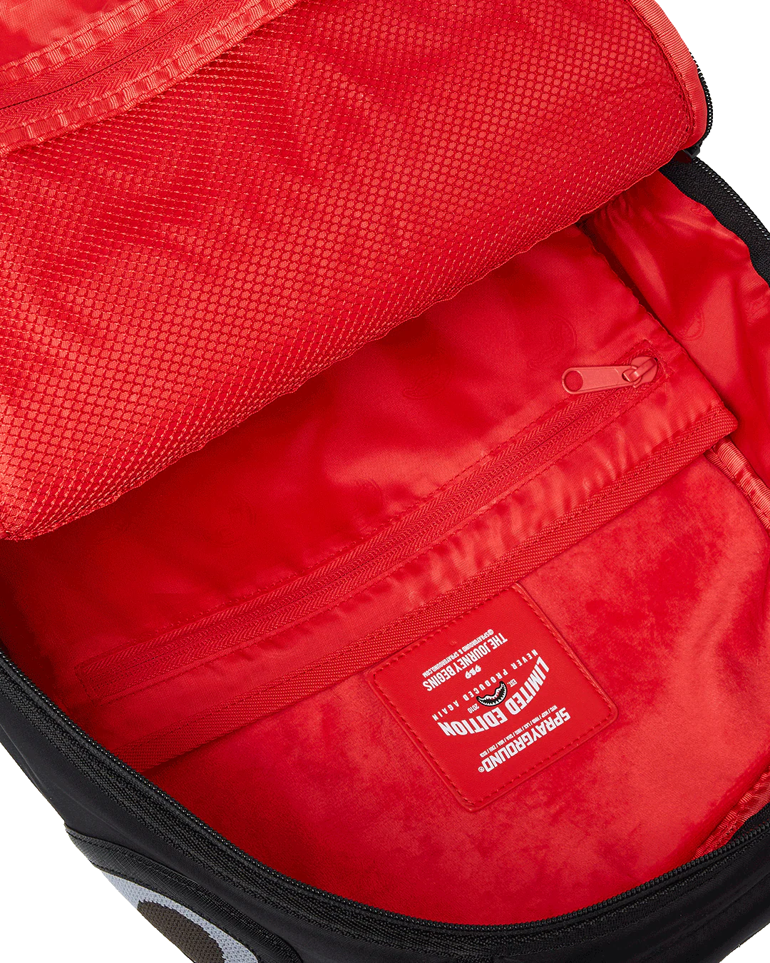Inoltre, uno scomparto speciale in velluto protegge gli occhiali da sole, mentre le zip dorate e il badge metallico “Sprayground Authentic” aggiungono un tocco di pregio.