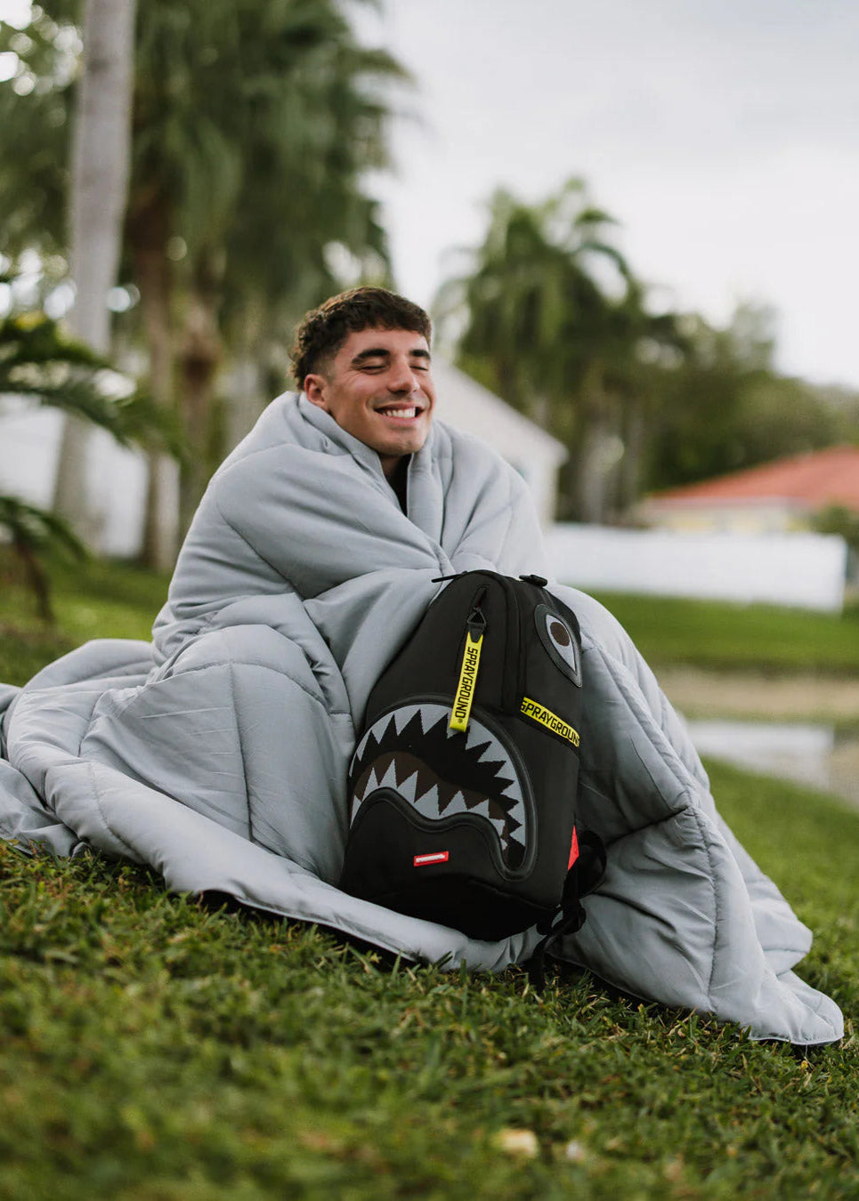 Il design presenta la celebre stampa shark mouth e occhi in maglia knit, oltre a un originale lanyard-trattore per la zip, simboli dello stile audace Sprayground.