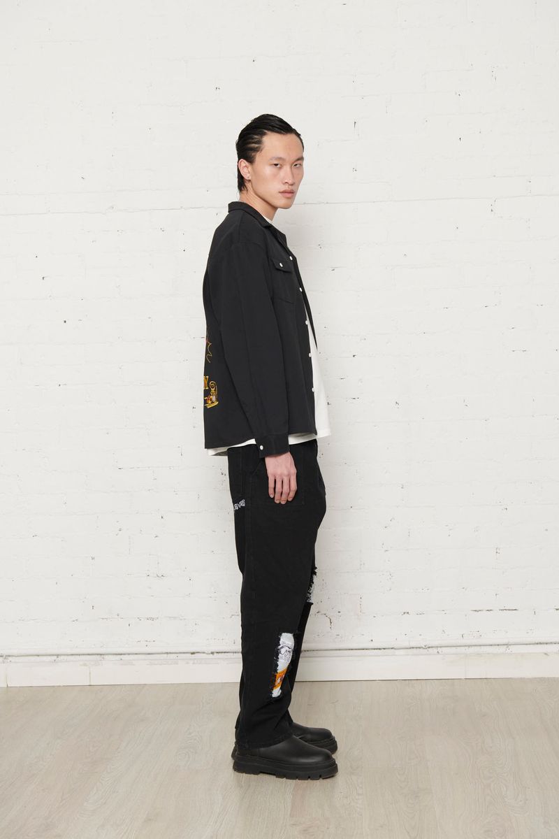 La Bowling Shirt Black di Pas De Mer è una camicia a maniche corte che combina estetica vintage e spirito streetwear contemporaneo.