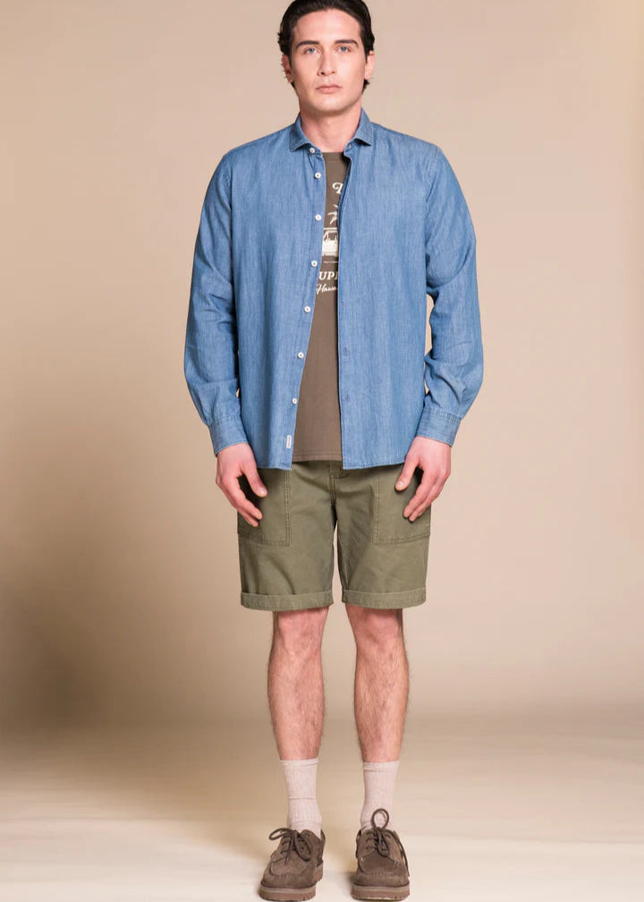 The Riley Collar French from Impure is a denim outerwear that fuses workwear aesthetics with contemporary tailoring.