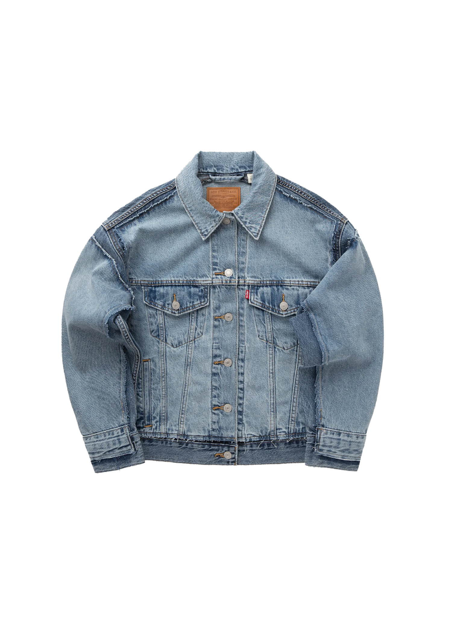 La giacca Trucker anni ’90 decostruita da donna Levi’s è una reinterpretazione contemporanea dell’iconica trucker denim, con silhouette ispirata agli anni ’90 e design destrutturato per un look moderno e cool.