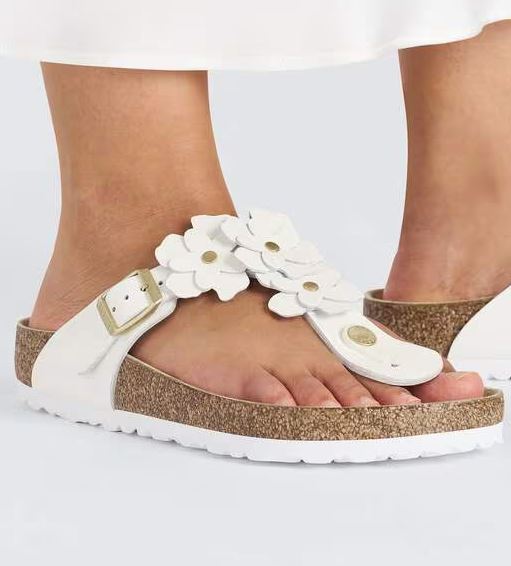 I Birkenstock Gizeh Flower Embellishment Natural Leather sono sandali infradito da donna che uniscono comfort iconico Birkenstock e design femminile elegante.