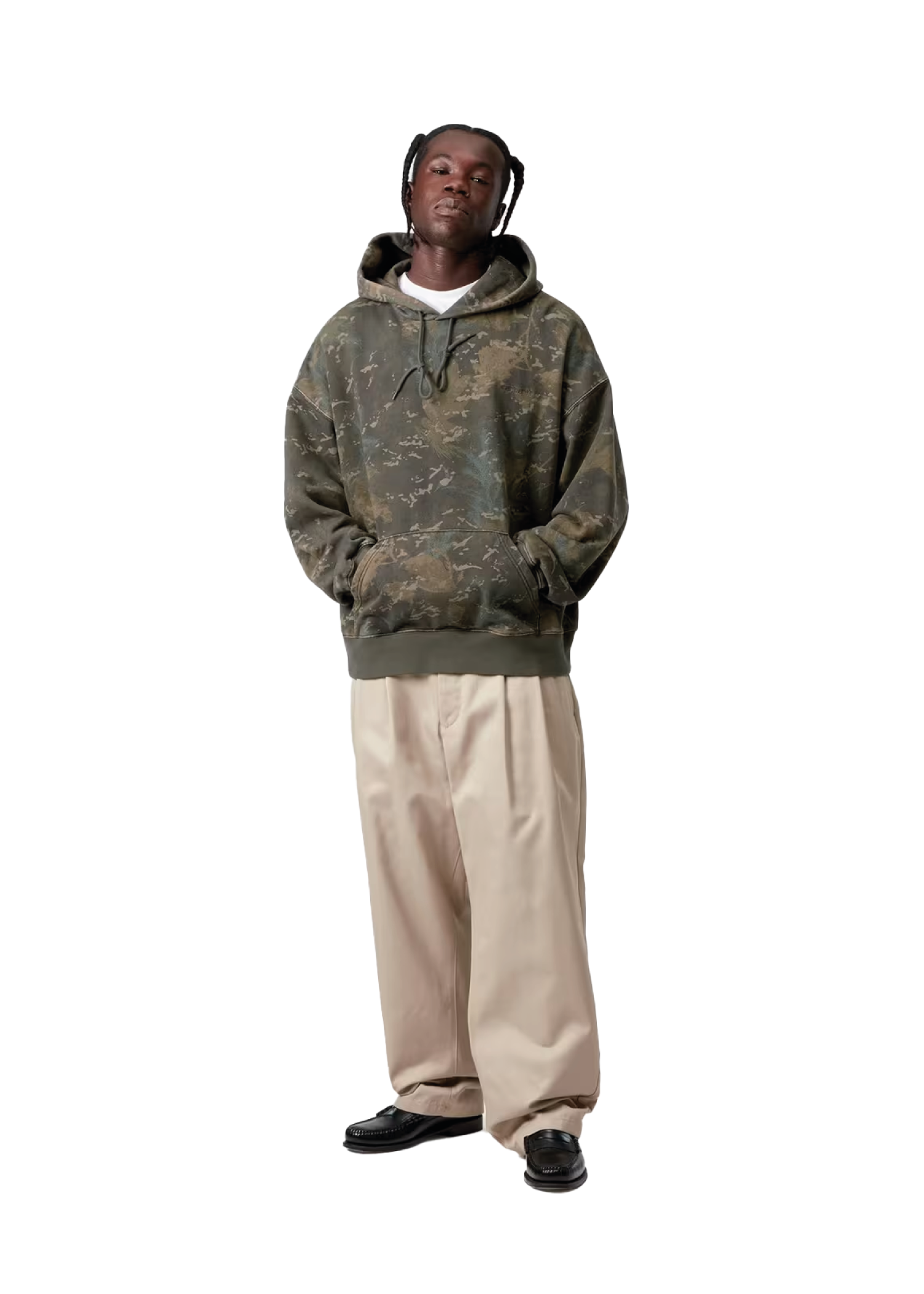 La Carhartt WIP Hooded Benton Sweatshirt Camo Combi Green Garment Dyed è una felpa con cappuccio dal carattere urbano e deciso, realizzata in morbido cotone felpato con finitura garment dyed che regala al colore Camo Combi Green un effetto vissuto e unico su ogni capo.
