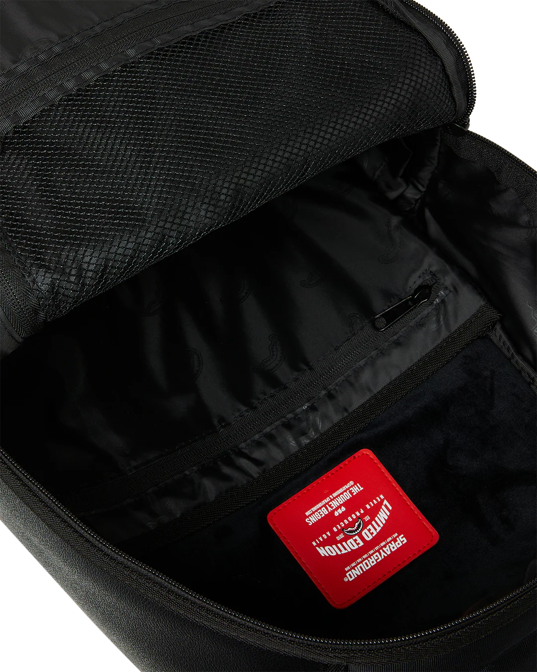 L’esterno presenta una comoda tasca frontale, tasche laterali e una zip stash, insieme a un comparto separato in velluto per occhiali e dettagli in zip dorata con badge “Sprayground Authentic”, per un tocco elegante quanto pratico.