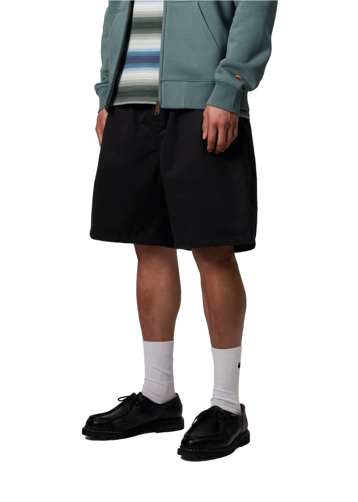 I Carhartt WIP Marv Short Black Stone Washed sono pantaloncini da uomo dallo stile urbano e rilassato, caratterizzati da una finitura stone washed nera che conferisce un effetto vissuto e autentico.