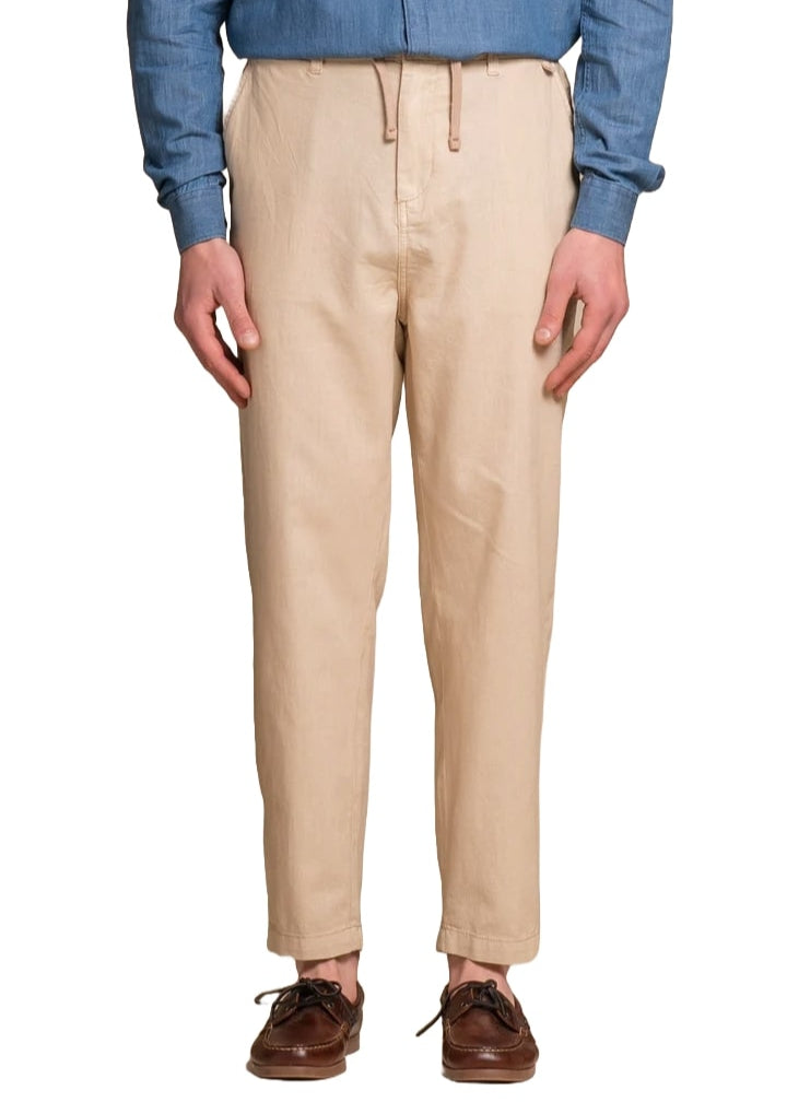 THE Miles Chino Long Comfort Fit by Impure are men's chino trousers made from a fine linen blend (55% linen, 45% cotton), ideal for facing the hottest days with style and comfort.