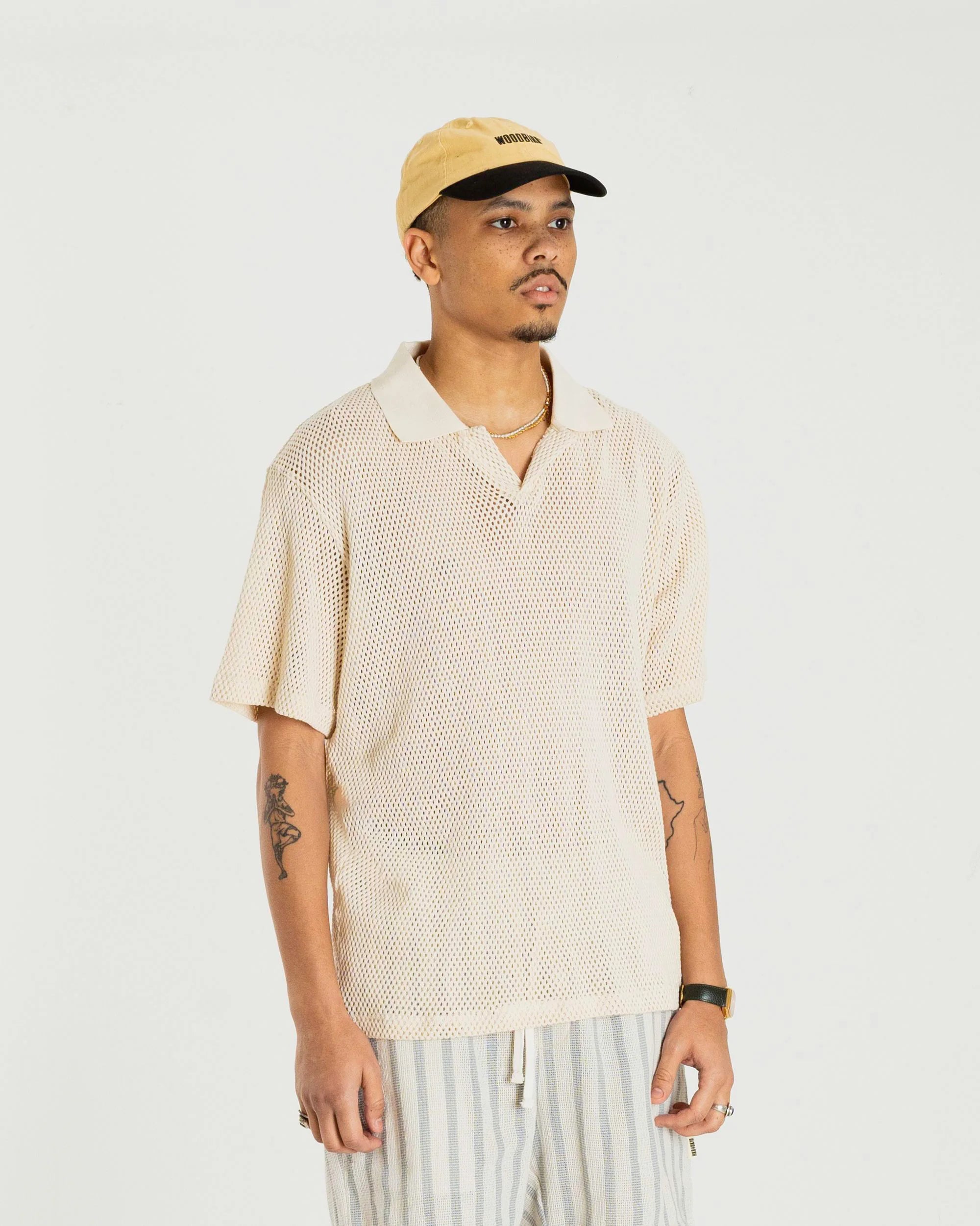 The Woodbird WBMoul Mesh Polo in Off White is a contemporary reinterpretation of the classic polo.