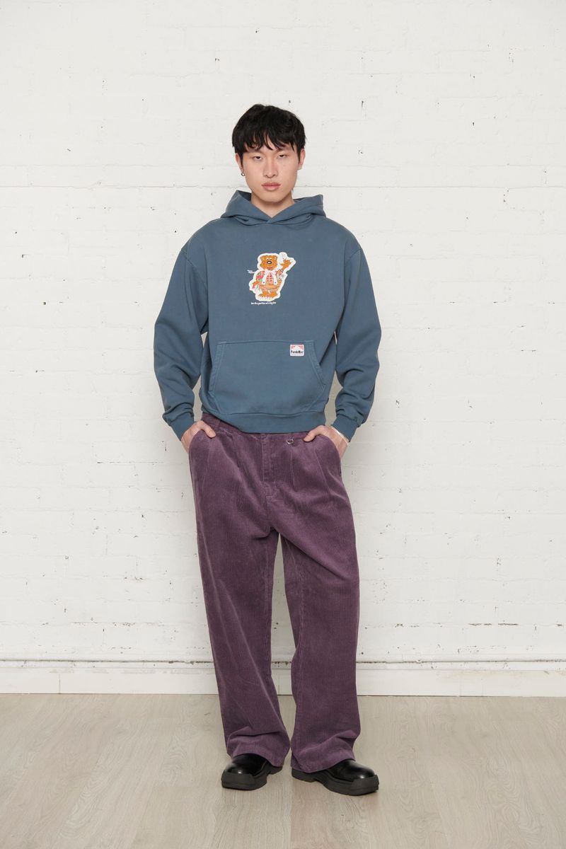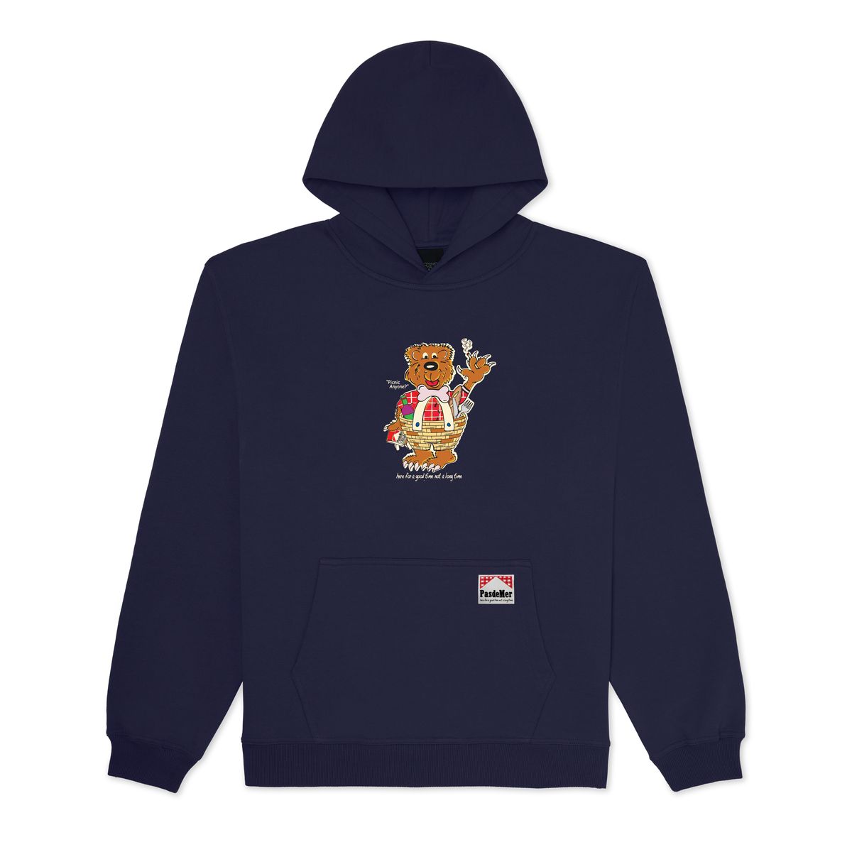 La Not Long Time Hoodie Blue di Pas De Mer è una felpa con cappuccio dallo stile streetwear contemporaneo che combina comfort e grafica distintiva.