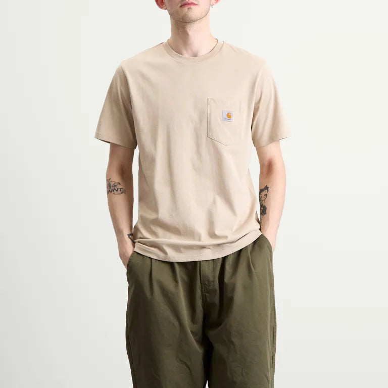 The S/S Pocket T‑Shirt by Carhartt WIP is made from 100% 190 g/m² jersey cotton , with a regular fit and a practical chest pocket featuring the classic Square Label , the brand's symbol .