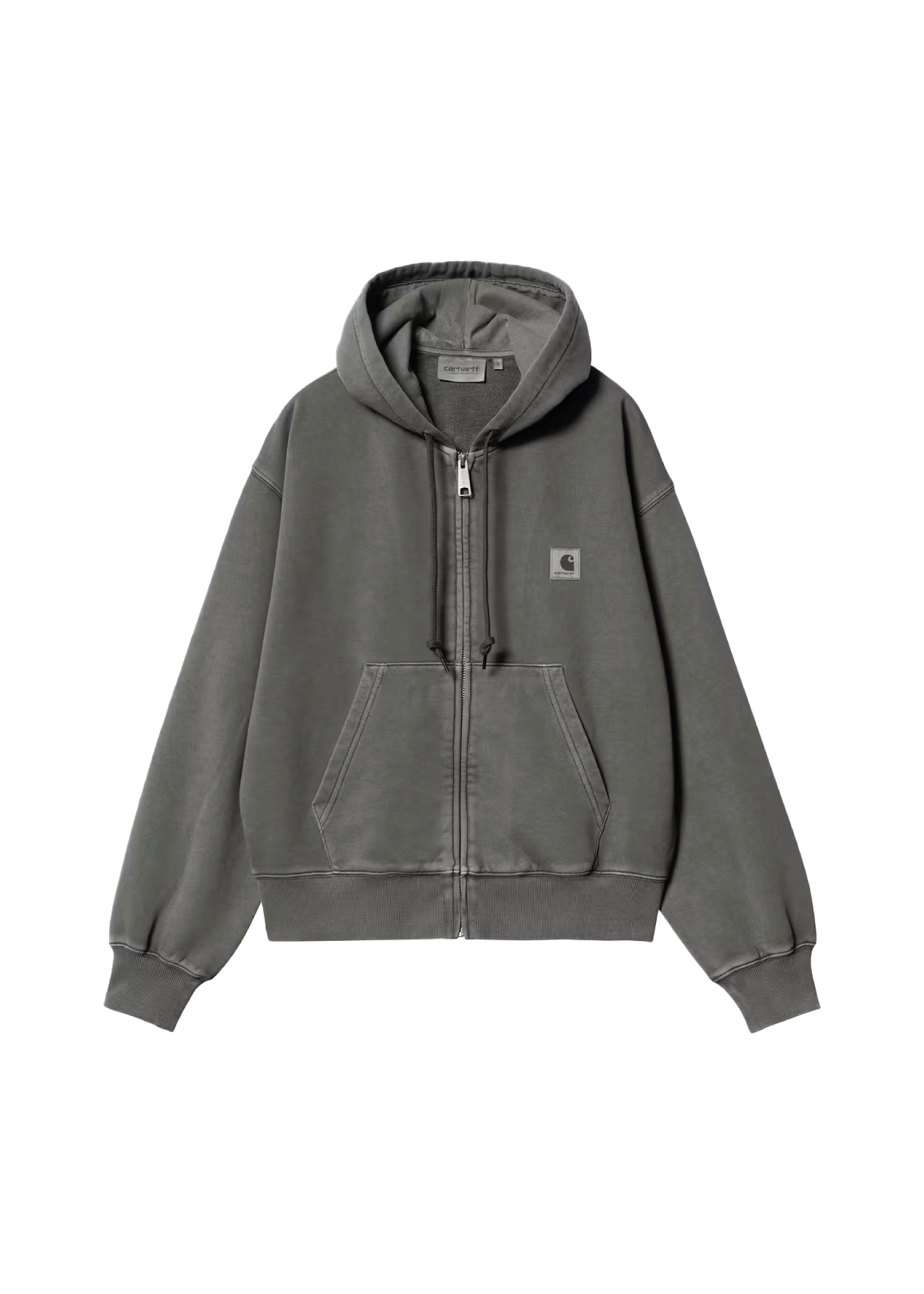 La felpa con cappuccio Carhartt WIP W Hooded Nelson Jacket Black Garment Dyed è un capo casual da donna dallo stile urbano moderno, caratterizzato da una finitura garment dyed nera che regala un colore intenso e un aspetto leggermente vissuto.
