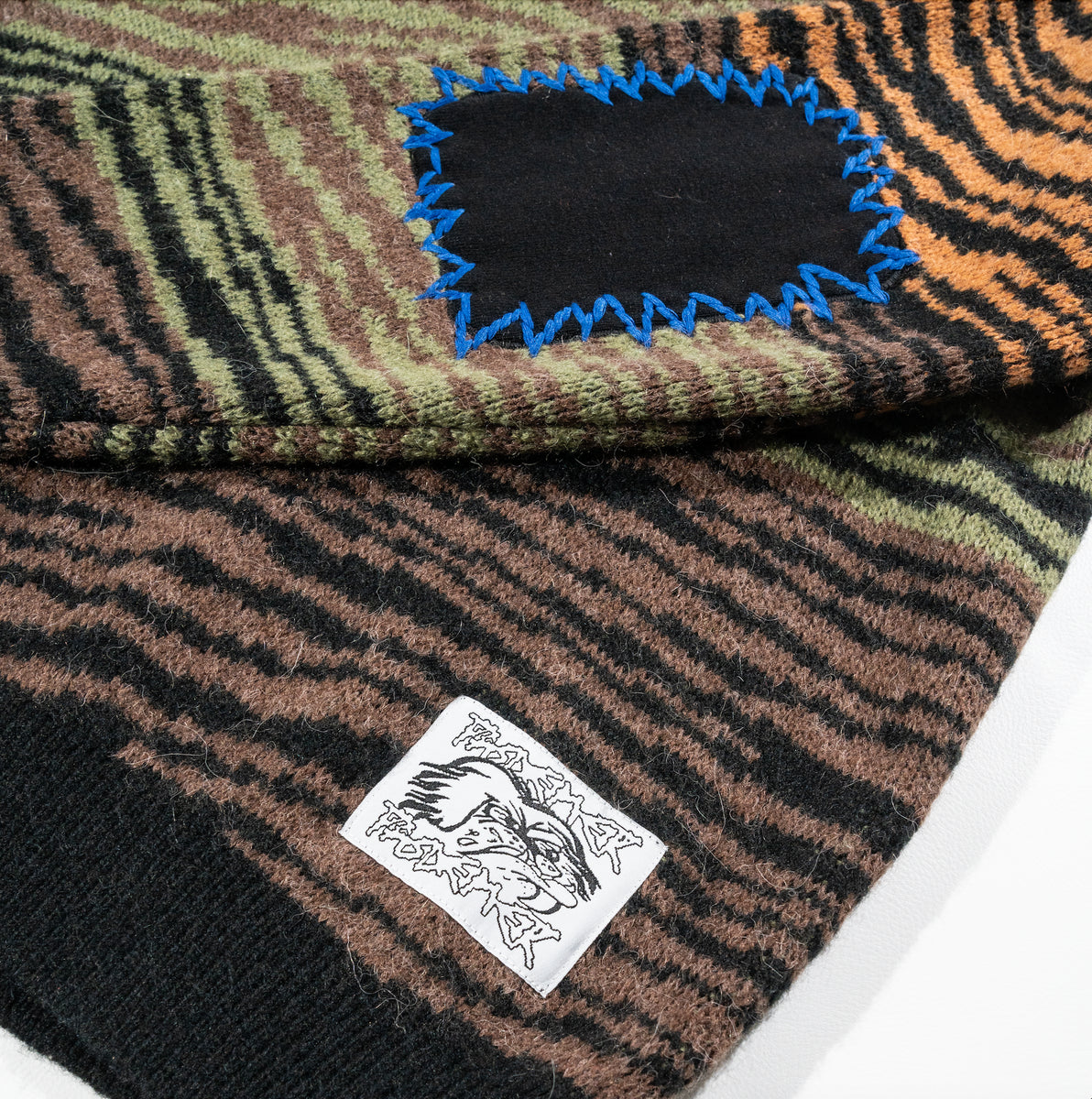 Il Zebra Jumper Multicolor di Pas De Mer è un maglione dallo stile streetwear distintivo caratterizzato da un pattern jacquard multicolore ispirato alle strisce zebra che dona al capo un forte impatto visivo.