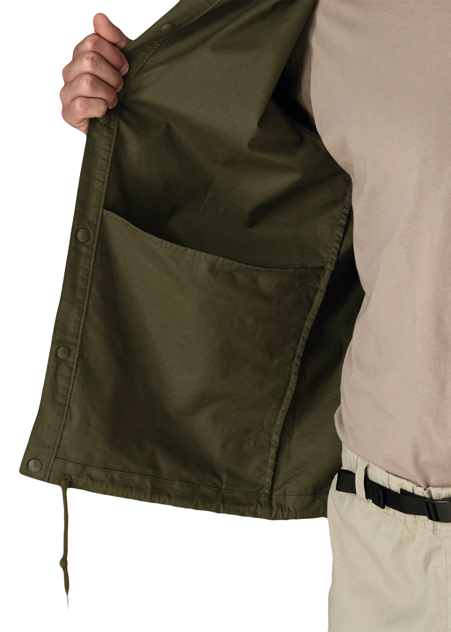 Realizzata in nylon riciclato resistente con finitura DWR (idrorepellente), offre una barriera leggera contro spruzzi leggeri e brezza, ideale per attività outdoor leggere, viaggi o uso urbano.