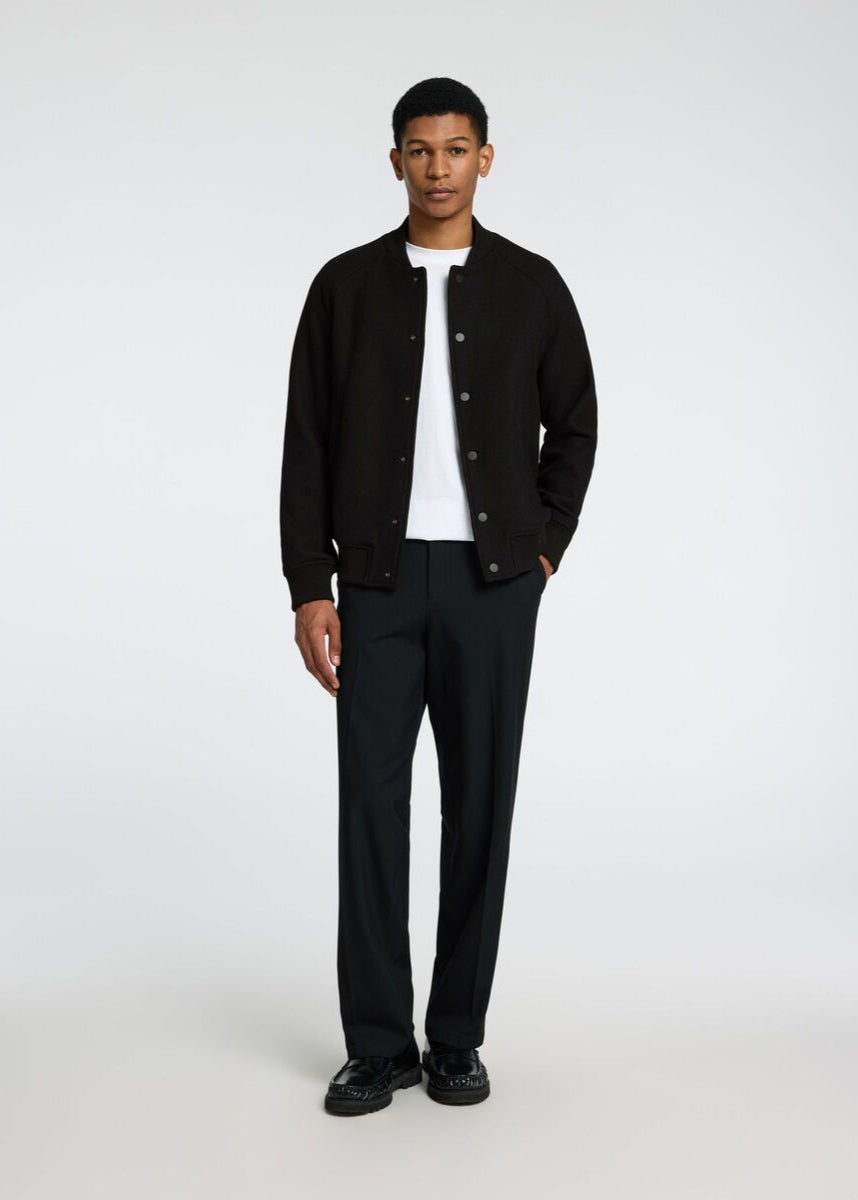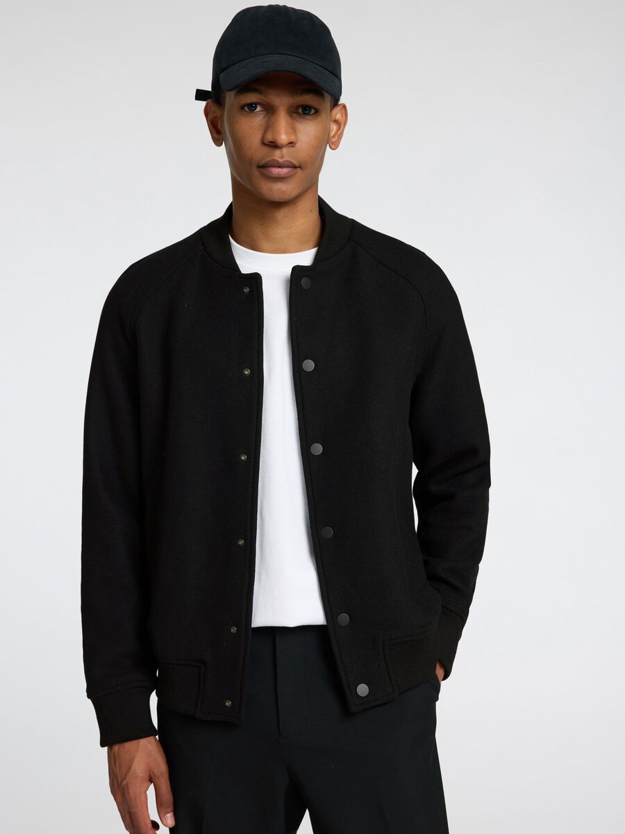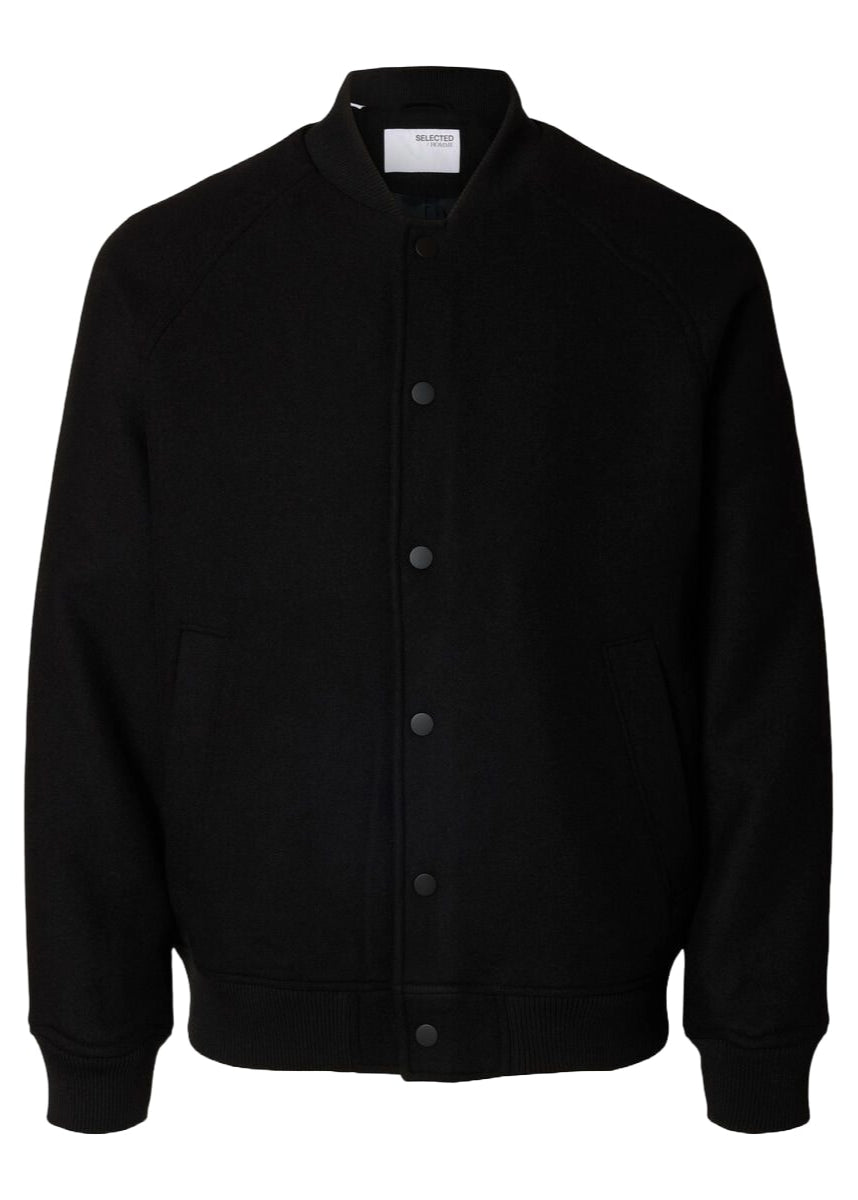 La Giacca da Aviatore in Lana Nera di Selected Homme è un capo iconico che unisce eleganza e funzionalità.