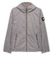 Il design include un cappuccio multi-pannello con visiera integrata e coulisse interna, zip frontale bidirezionale in metallo con puller brandizzato, e tasche laterali con zip angolate e “zip garages” per protezione da pioggia e vento.