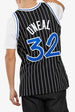 Il design riproduce fedelmente la maglia indossata da Shaquille O’Neal (#32) con numero e nome applicati in twill termosaldato, grafica ufficiale degli Orlando Magic e dettagli autentici della divisa originale.