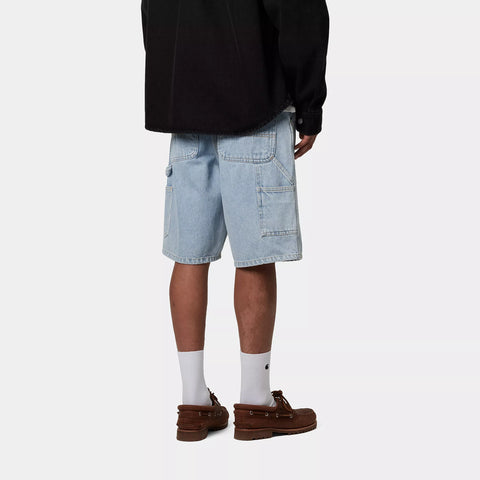 I Single Knee Short di Carhartt WIP in Blue Heavy Stone Bleached sono realizzati in robusto Smith denim da 13,5 oz 100% cotone, con una silhouette relaxed fit e vita regolare, per un look comodo e autentico.