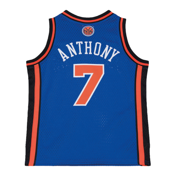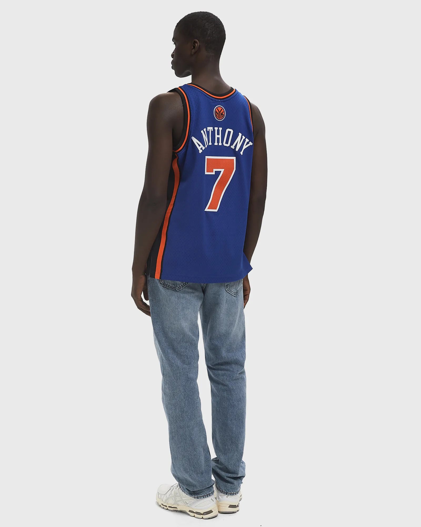 La Mitchell & Ness NBA Dark Jersey New York Knicks 2010 Carmelo Anthony 7 è una canotta da basket che celebra una delle stelle più iconiche della NBA e l’estetica delle divise utilizzate dai New York Knicks nella stagione 2010.