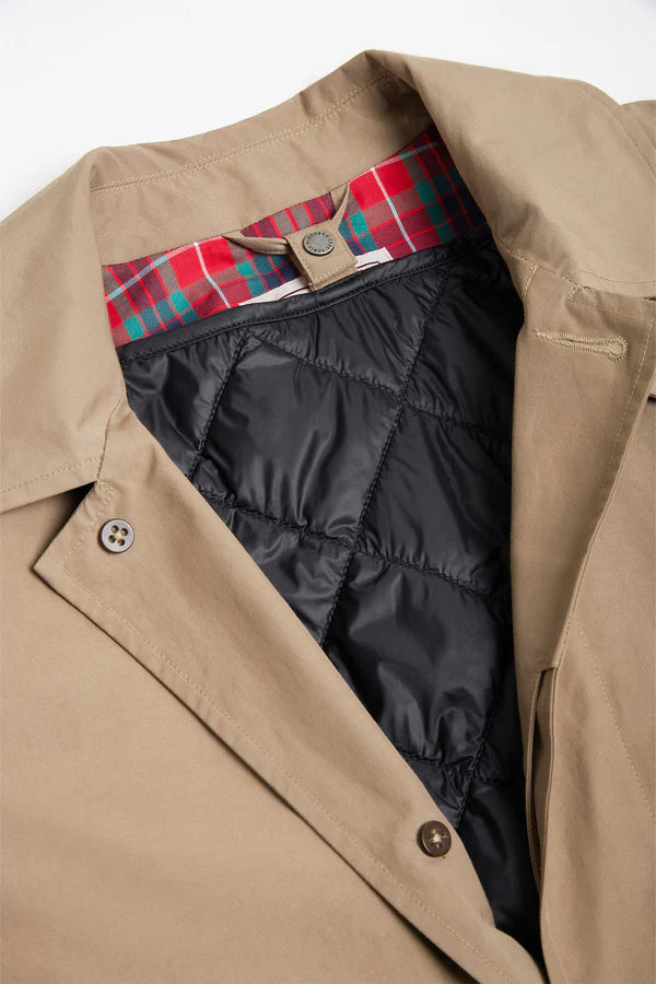 Affronta l’inverno con eleganza e versatilità grazie al Baracuta G10 Detachable con Wind Flap, un trench corto reinterpretato in chiave moderna.