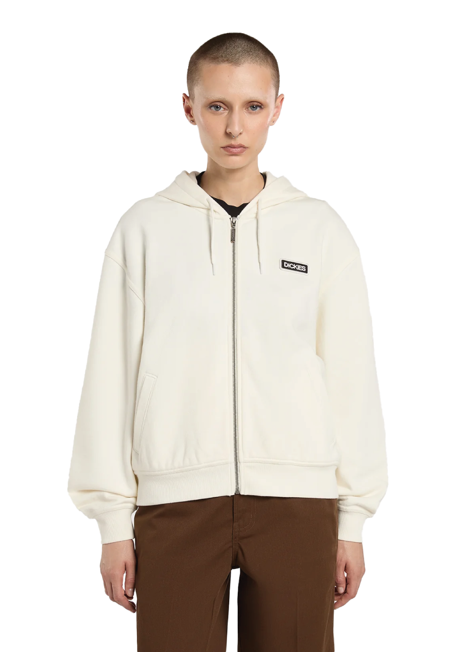 La chiusura full zip frontale rende la felpa pratica e versatile, perfetta per essere indossata in layering.