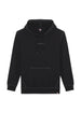 Felpa con cappuccio nera in morbido misto cotone-poliestere (60-80 % cotone + poliestere), con tessuto “French Terry” o felpa loopback, ideale per il comfort quotidiano.