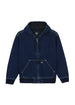 Giacca in denim blu navy dal taglio boxy, imbottita con fodera trapuntata e internamente foderata per offrire calore e comfort anche nei mesi freddi.