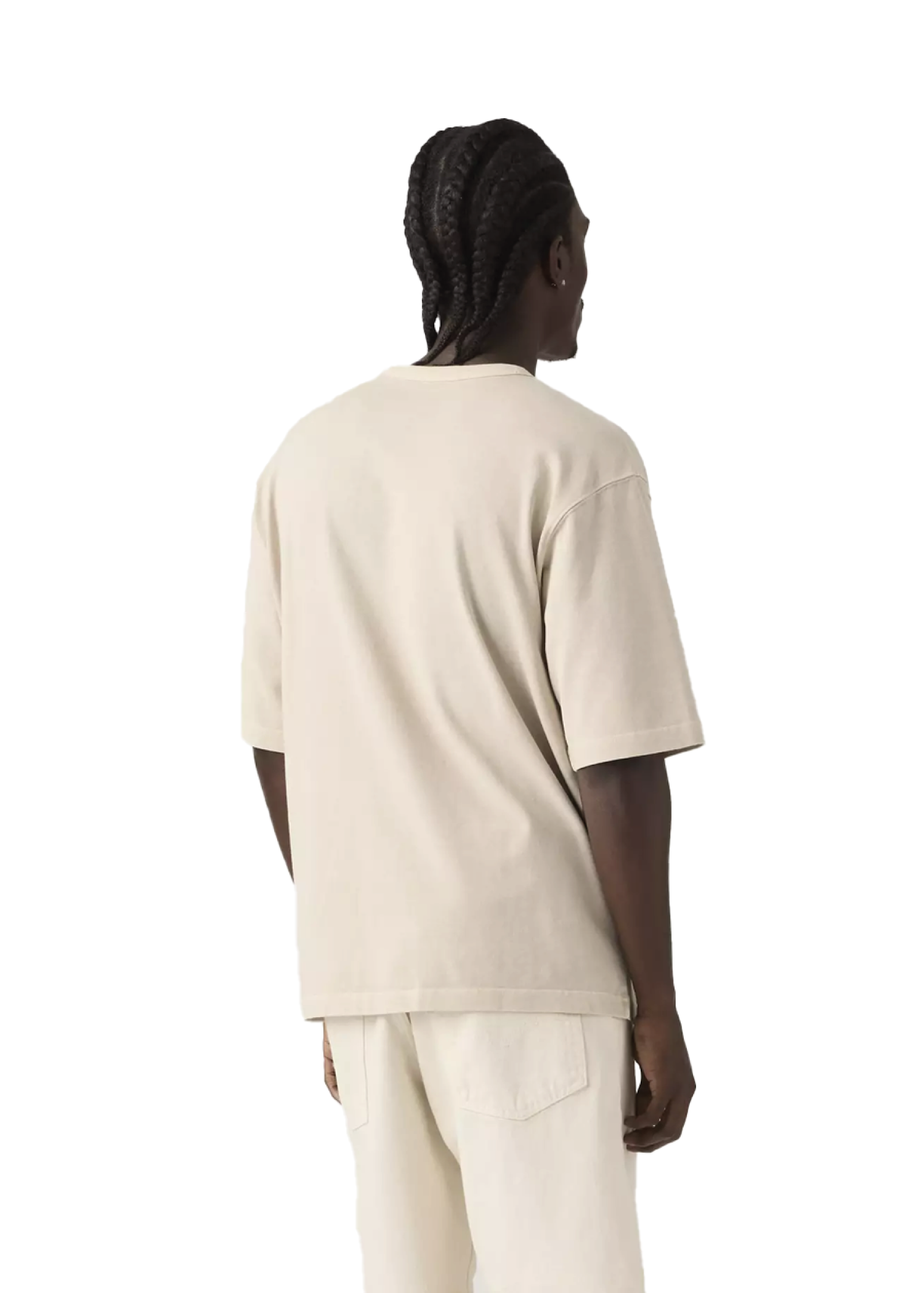 Il modello presenta girocollo classico, maniche corte e vestibilità loose, creando una silhouette ampia e contemporanea perfetta per outfit casual e streetwear.