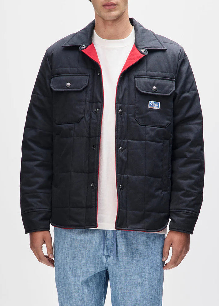 l Maxwell Waxed Overshirt di Deus Ex Machina è una giacca-overshirt imbottita che fonde eleganza sportiva e robustezza tecnica.