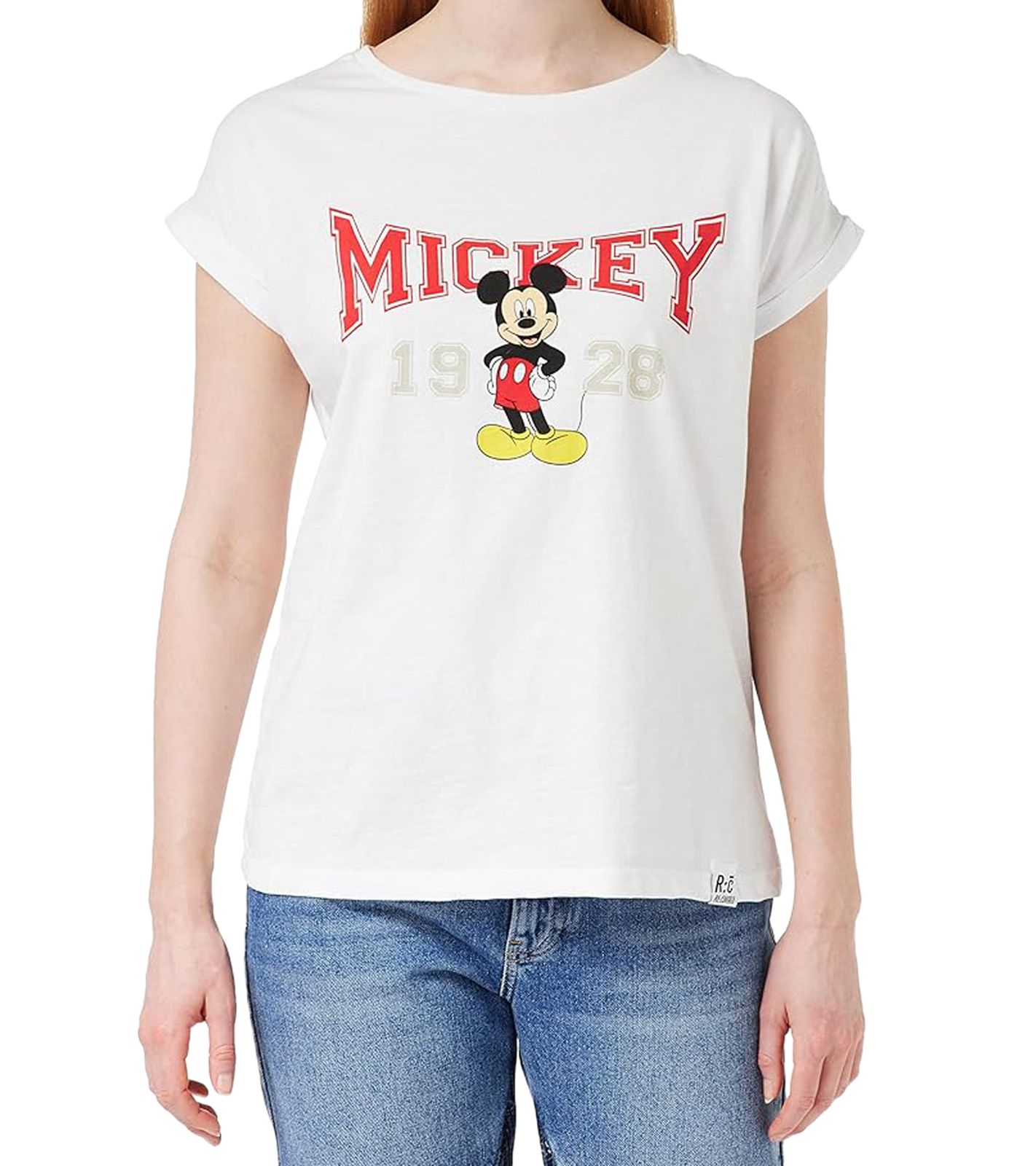 Celebra l'iconico Topolino con questa T-shirt da donna firmata Re:Covered x Disney.