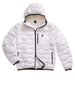 Finiture come elastico rigato su cappuccio, polsini e fondo, tasche interne con chiusura a velcro e patch logo completano il capo rendendolo ideale per affrontare città e spostamenti invernali con stile.