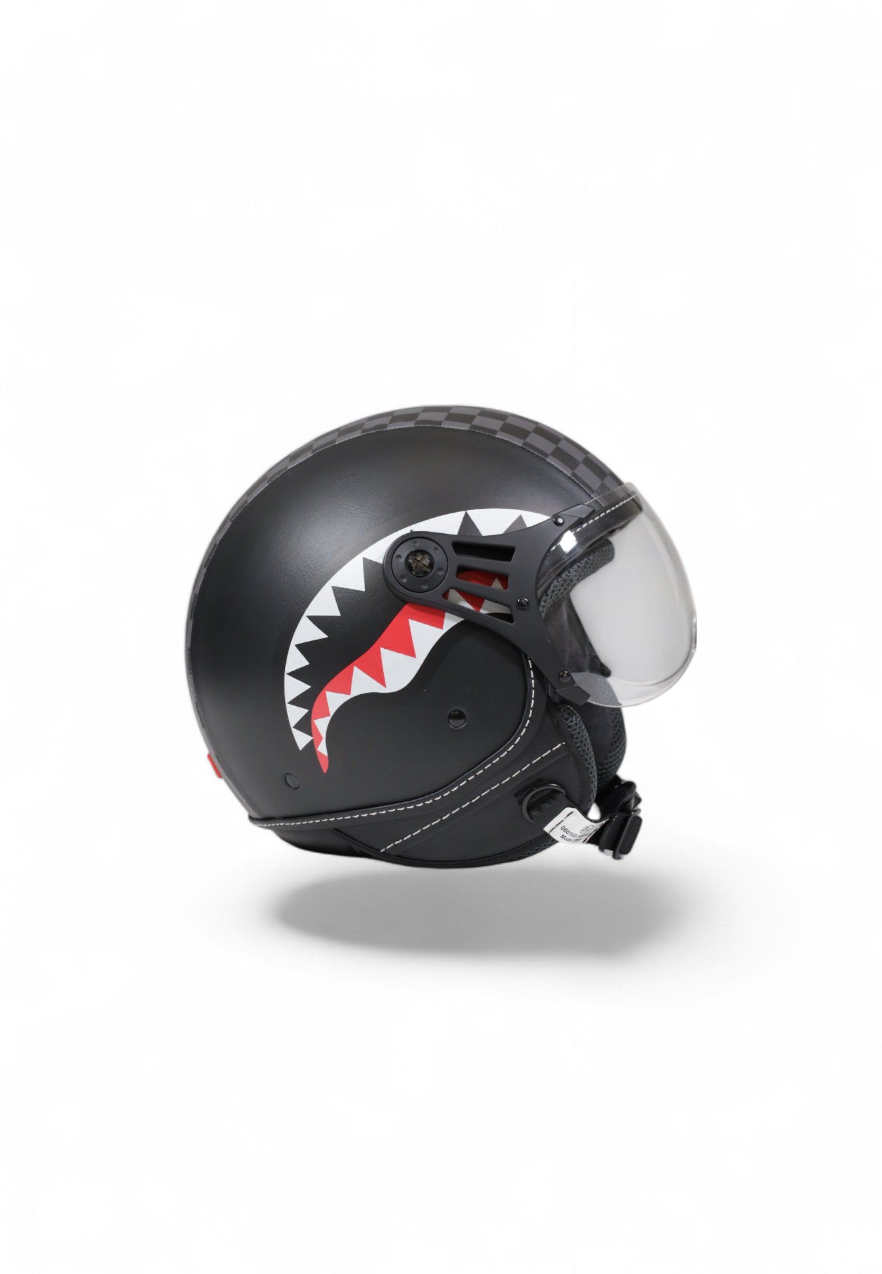 Casco Sprayground Sharks in Paris Helmet open-face unisex con calotta esterna rigida in policarbonato/termoplastica e design audace con grafica “bocca di squalo” e pattern a scacchi damier.