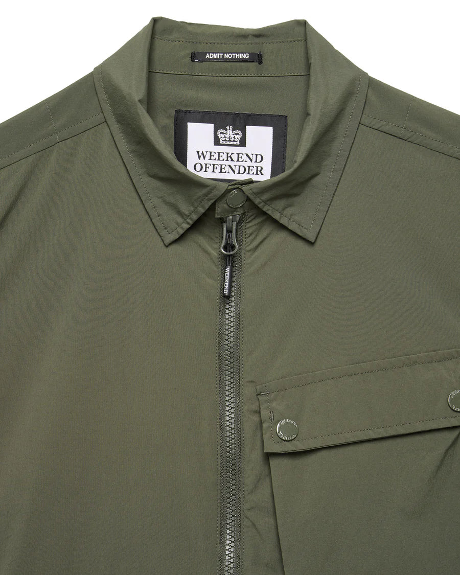 La Southbank Technical Over-Shirt di Weekend Offender è una camicia tecnica da uomo, realizzata in tessuto leggero a trama fine con elasticità bidirezionale (94% nylon, 6% elastan).