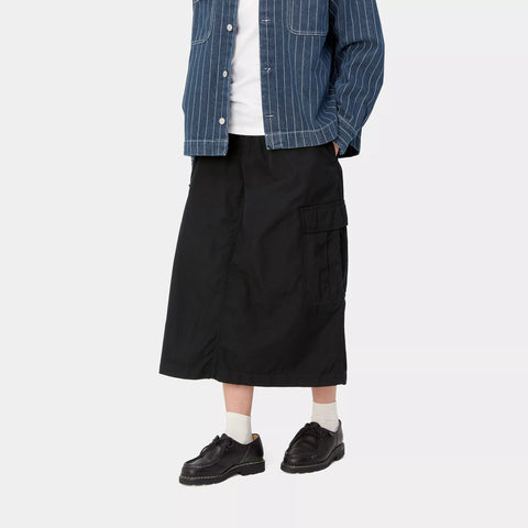La W' Jet Cargo Skirt di Carhartt WIP nel colore nero è una gonna cargo da donna che combina funzionalità e stile contemporaneo.